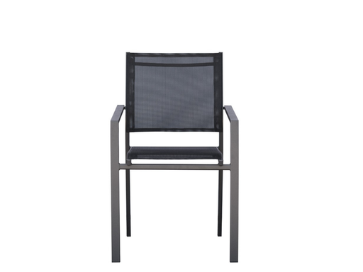 Sedia ZARA, con braccioli – impilabile. Colori disponibili: alluminio bianco e textilene grigio chiaro o alluminio antracite e textilene nero. CO...