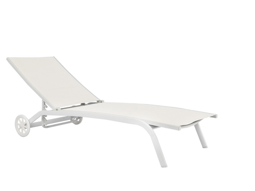 Lettino 5 posizioni con ruote – alluminio – tubo 40 x 22 mm – impilabile – textilene 600 gr. – struttura allumino grigio, textilene nero o struttur...