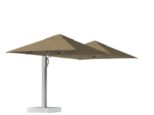 Ombrellone a due braccia laterali Dual realizzato da Ombrellificio Scolaro. Base non inclusa. Evoluzione dell’ombrellone singolo astro con innovat...