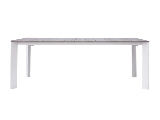 Tavolo ARENZANO – alluminio bianco – allungabile 211/276 x 100 cm – piano a doghe in alluminio effetto legno – allungo con gambe scorrevoli  CODICE...