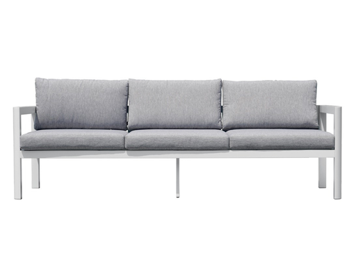 Divano 3 posti MARSIGLIA , struttura in alluminio bianco, da montare, cuscini sfoderabili in poliestere grigio cenere. CODICE PRODOTTO: CSD03
