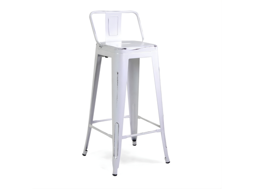 Lo sgabello New Bristol con schienale rappresenta un classico del design industriale, caratterizzato da una struttura in ferro verniciato nero abbi...