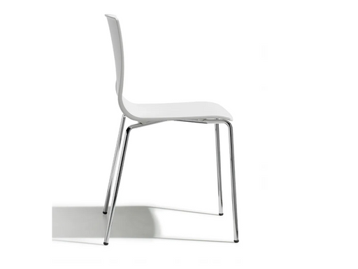 Scocca in tecnopolimero riciclabile. Struttura in acciaio tubolare ø mm 16 cromato con tavoletta scrittoio antipanico, movimento a ribalta. Impilab...