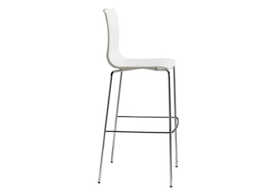 Sgabello con scocca in tecnopolimero. Telaio a 4 gambe in acciaio cromato. Poggiapiedi.  Prezzo per 2 sgabelli.