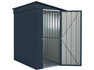 Casetta da giardino addossata 124 x 180 cm – struttura con telaio interno triplo, con sistema angolare brevettato – In lamiera color antracite – vernice epossidica garantita 15 anni – Con porta singola a battente – resistenza al carico neve: 100 kg/m² – Massimo ingombro compreso tetto: 124 x 180 x H 199cm (H min 179,5 cm) – Misure perimetro di base: 112 x 172 cm – Misure interne: 103 x 161 cm – Misure porta: 67 x 173 cm