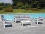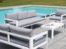 Divano 3 posti MARSIGLIA , struttura in alluminio bianco, da montare, cuscini sfoderabili in poliestere grigio cenere.