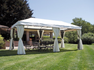 Gazebo NEBRASKA 6 x 3 mt. – pali in alluminio Ø 100 mm antracite – poliestere 350 gr. resinato – tela ecrù- volante biscotto – con antivento – set tende laterali – altezza max. 2,90 mt