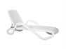 Lettino prendisole con braccioli. Materiale: struttura tubolare in polipropilene trattato anti-UV e colorato in massa. Resina riciclabile.