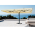 Parasole composto da 2 (double) ombrelloni ancorati ad un unico sostegno. Articolo di qualità e dal design innovativo, adatto ad un uso professionale. È dotato di una robusta struttura modulabile in alluminio, color grigio antracite, sviluppata per coprire grandi superfici. Oggetto adatto ad arredamenti d’esterno di bar e ristoranti.