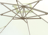 Ombrellone CALIFORNIA 3 x 3 mt. – fusto tortora con maniglione – palo alluminio ovale 77 x 53 mm – 8 bacchette 14x24x0,8 mm – ruotabile 360° – con antivento – altezza max. con base 2,70 mt – poliestere 250 gr. ecrù