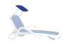 Parasole reclinabile per lettino. Materiale: struttura tubolare in polipropilene trattato anti-UV e colorato in massa. Interno in tessuto sintetico traspirante (tessuto in filo di poliestere rivestito in PVC). Resina riciclabile.