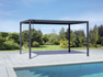 Pergola NEW MEXICO 3 x 4 mt. – pali in alluminio 90 x 90 x 1,3 mm antracite – traversi tetto in acciaio 120 x 30 x 1,3 mm – lamelle in acciaio 147 x 30 x 1,2 mm – tetto lamellare orientabile tramite manovella – altezza max. 2,30 mt – sistema di scarico dell’acqua integrato all’interno dei pali portanti