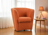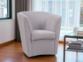 Poltrona da camera dallo stile avvolgente e contemporaneo, rivestita in morbido tessuto, ideale per ambienti raffinati come la camera da letto, un angolo lettura o una zona relax.