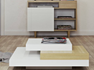 I 4 piani fissi, realizzati in materiale alveolare, che compongono il tavolino di design permettono di avere un'originale e dinamica alternativa alla disposizione dei soprammobili da salotto e gli oggetti domestici quotidiani, rendendo unica la permanenza nello spazio living.