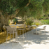 Il tavolo quadrato è sostenuto da un piedistallo formato da una sola gamba. Il piano ha i bordi arrotondati che ben si sposano con lo stile di tutta la collezione. La struttura è in alluminio e il piano in gress.