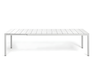 Tavolo allungabile. Materiale: struttura e piano in alluminio verniciato. Dotato di piedini regolabili.