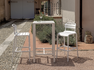 Tavolo ISEO alto contract, acciaio 70 x 70 cm, da montare, impilabile con gommini distanziatori, gambe 4,5 cm x 4,5 cm x 1,5 mm e con piedini regolabili