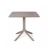 Appositamente studiato da Nardi per occupare poco spazio, Clip è un tavolo professionale quadrato in resina fiberglass, 80x80cm, con gamba centrale a quattro razze e piano in DurelTop foto-inciso con un motivo bucherellato rotondo. Ideale per ambienti esterni ed interni.